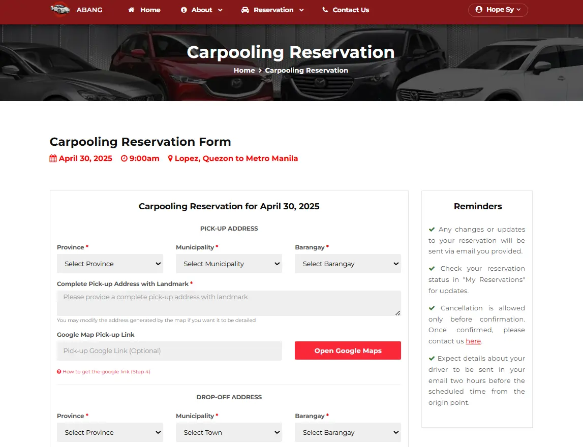 Carpooling reservation platform for safe, convenient ride-sharing between commuters.
