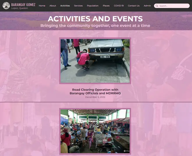 Wix-based site and system for managing barangay data, news, residents, and records.