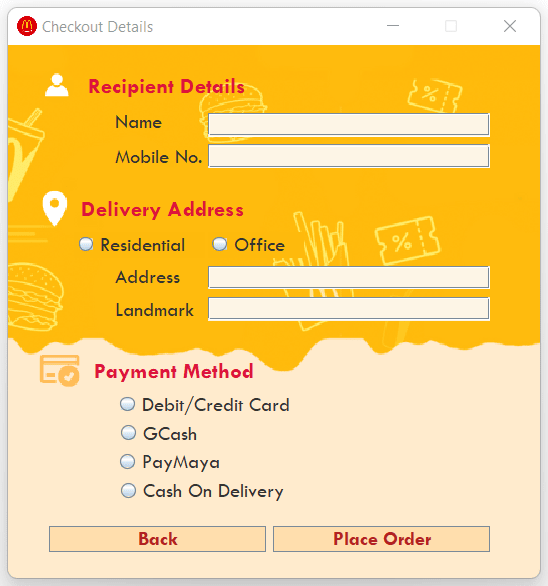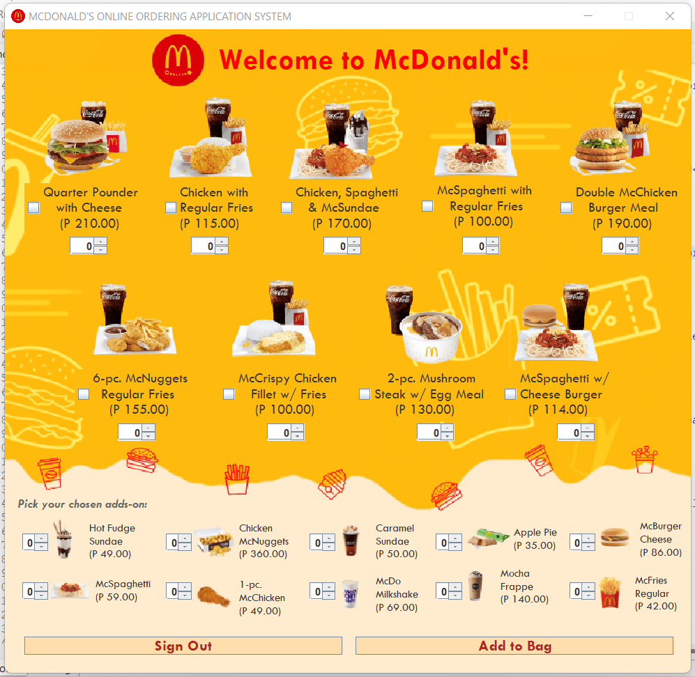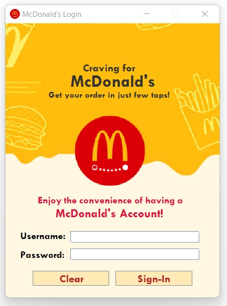 Java-based mock ordering system for McDonald's with login, order, and delivery features.