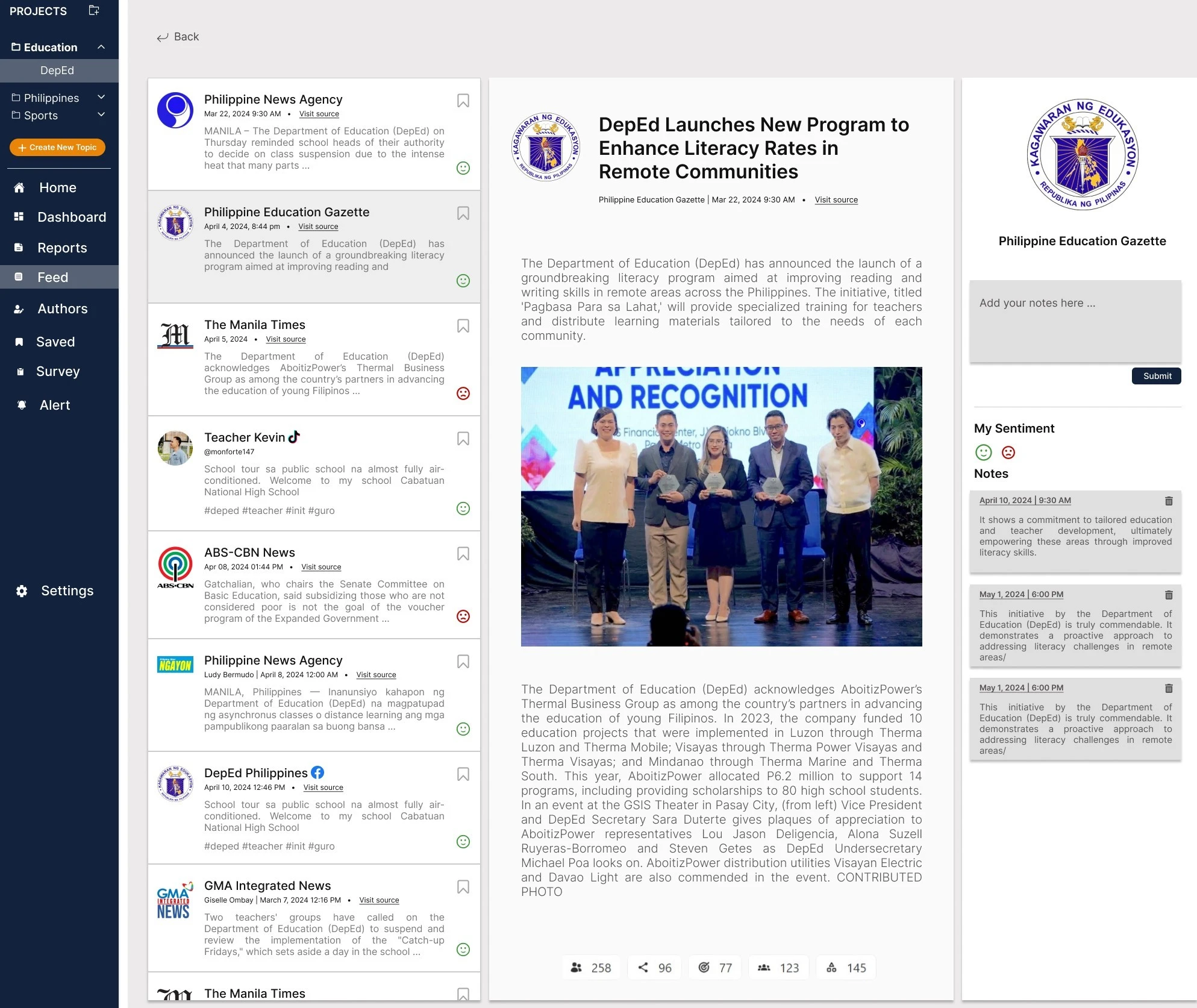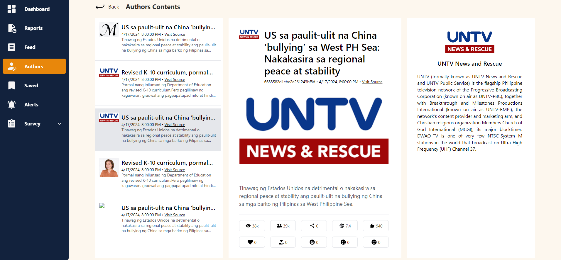 Media surveillance web app which was built with ReactJS and TailwindCSS for real-time intelligence monitoring.