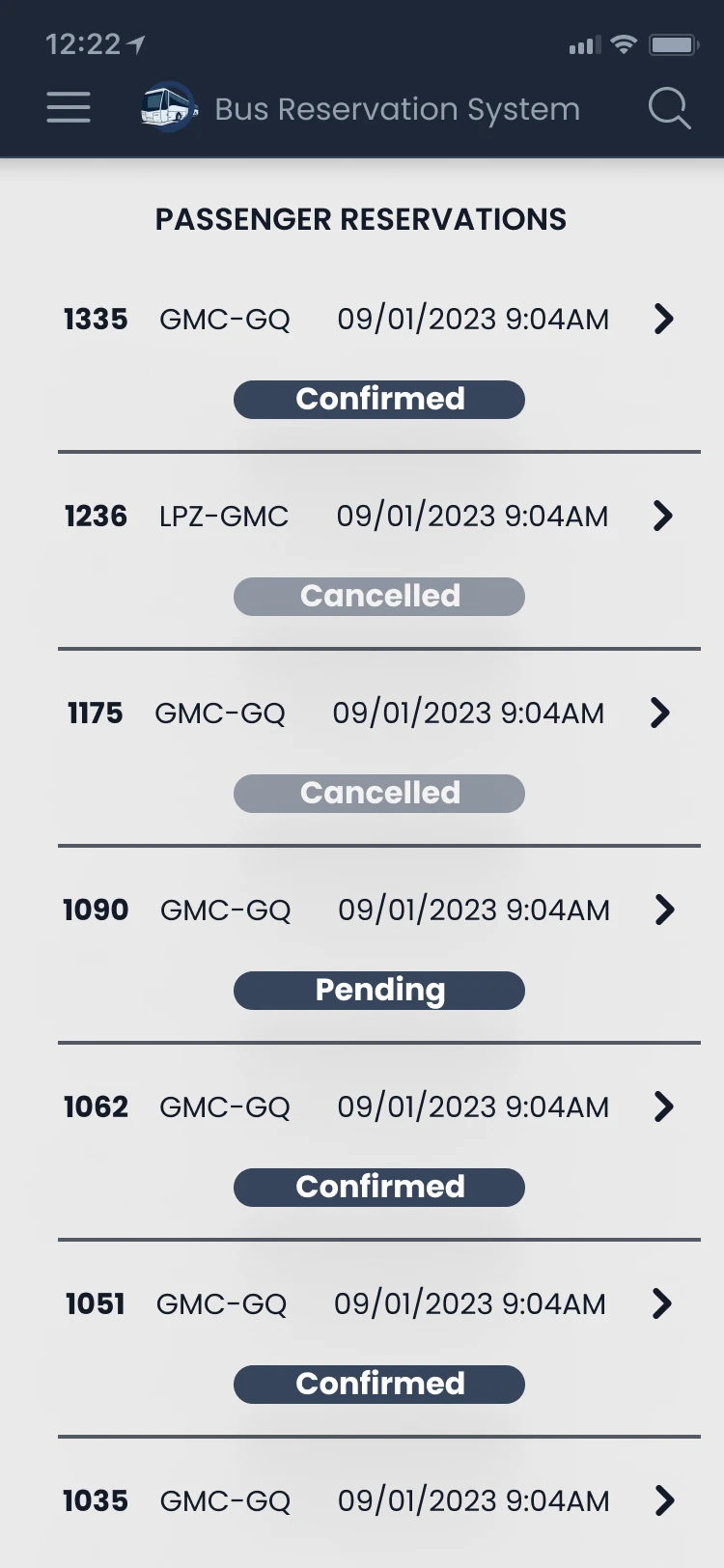 Bus reservation system designed in Figma for seamless trip booking and user-friendly navigation.